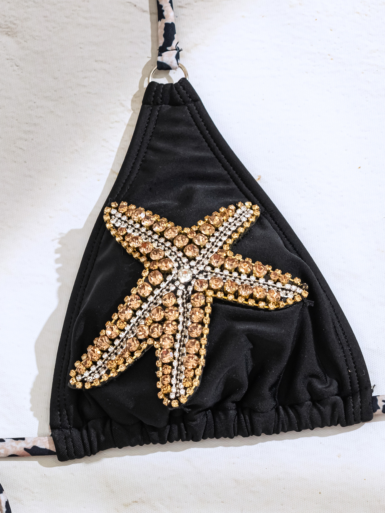 Bikini Color Matching Lace up Sequ Rhinestone Jewelry Sexy Split Bikini Swimsuit Swimwear