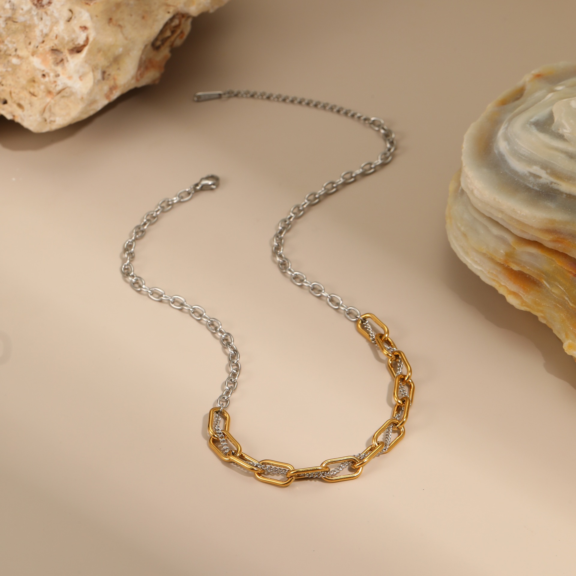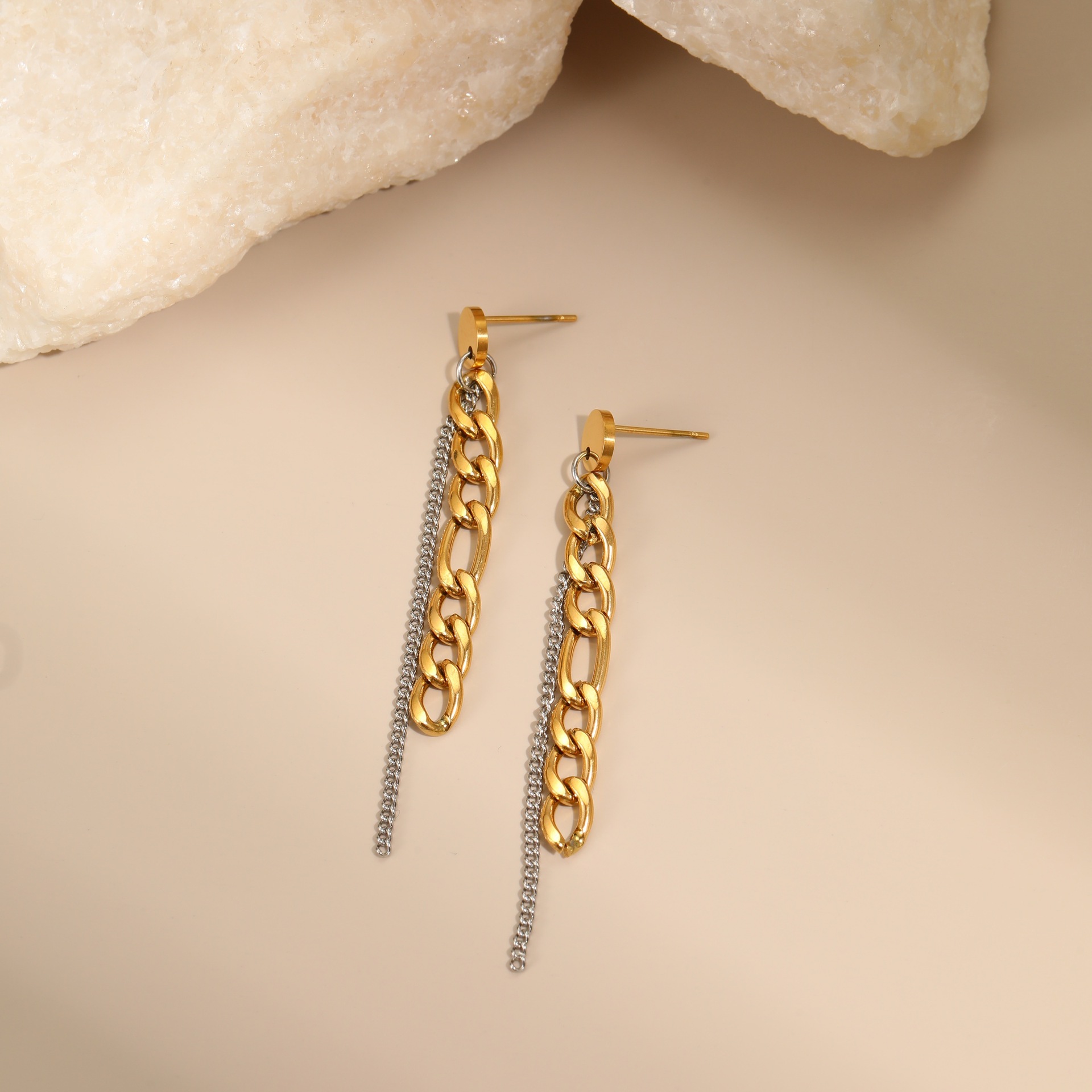 Gold Silver Color Matching Chain Design Stainless Steel Earrings Necklace Titanium Steel Bracelet Ornament