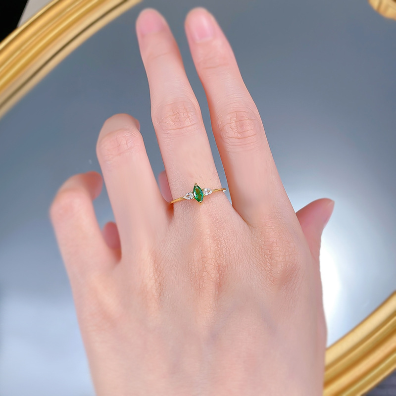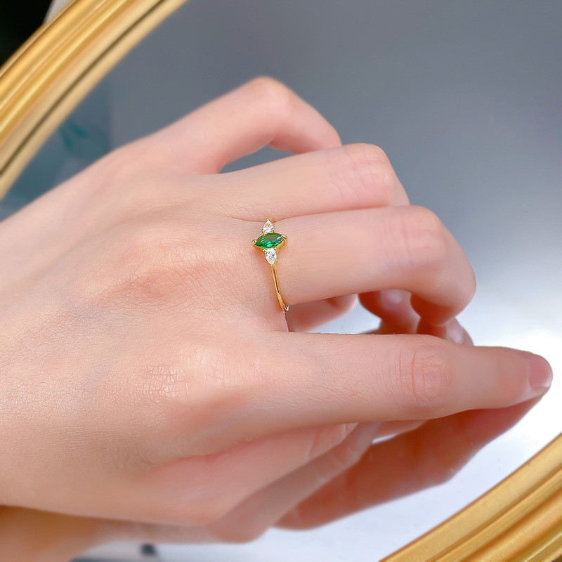 Jewelry Horse Eye Simulation Emerald S925 Sterling Silver Luxury Inlaid Retro Simple Ring
