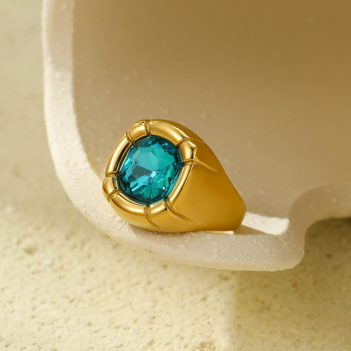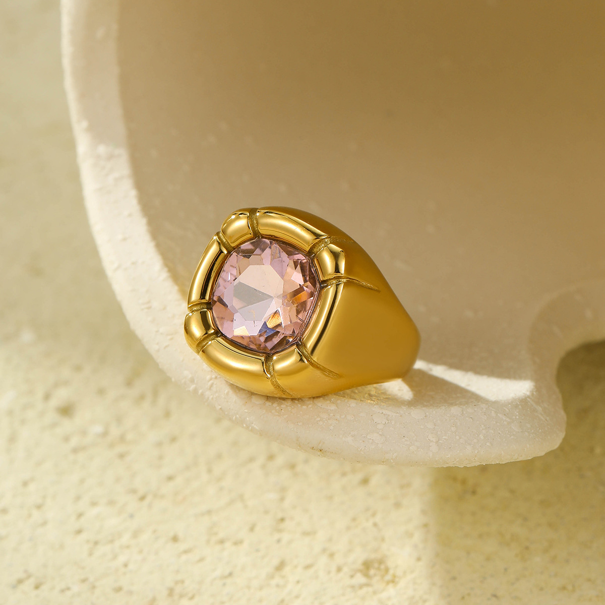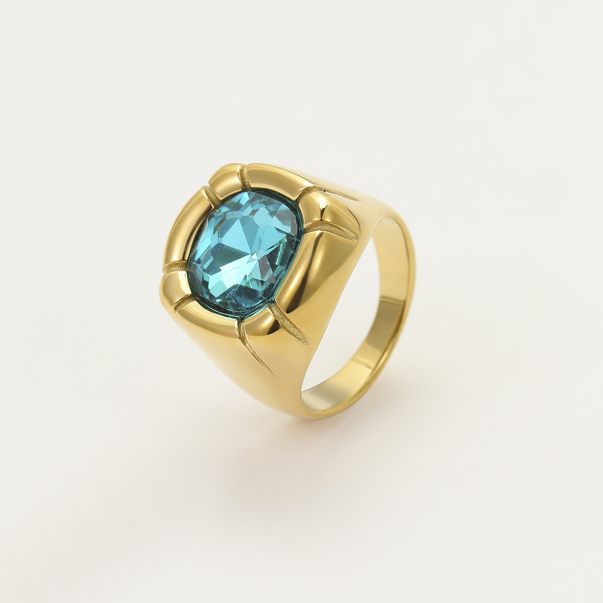 Retro Titanium Steel Ring Niche High Sense Square Zircon Stainless Steel Jewelry Women