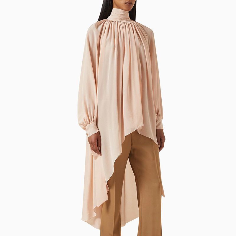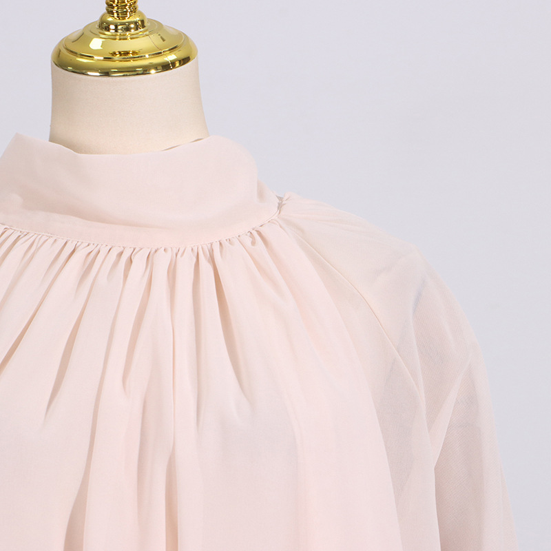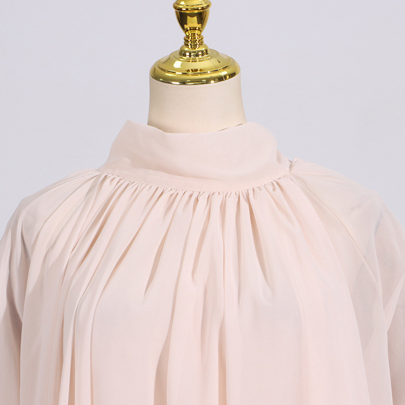 Simple Top Women Autumn Comfort Casual Office Turtleneck Long Sleeve Pleating Solid Color Shirt