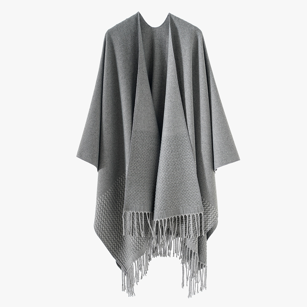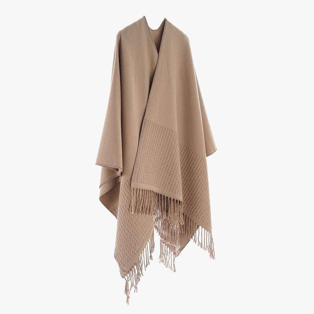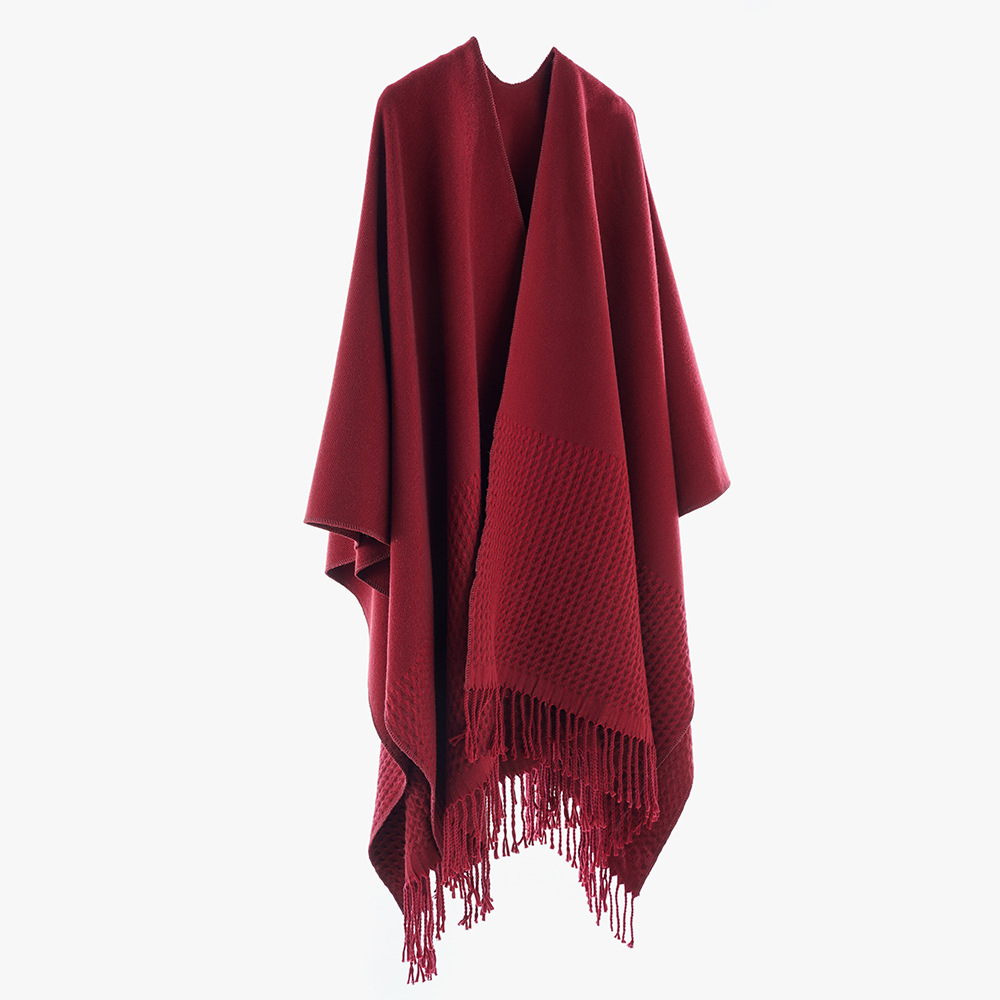 Solid Color Cashmere like Tassel Large Split Shawl Warm Monochrome Cape Plain Shawl
