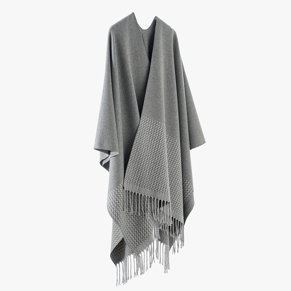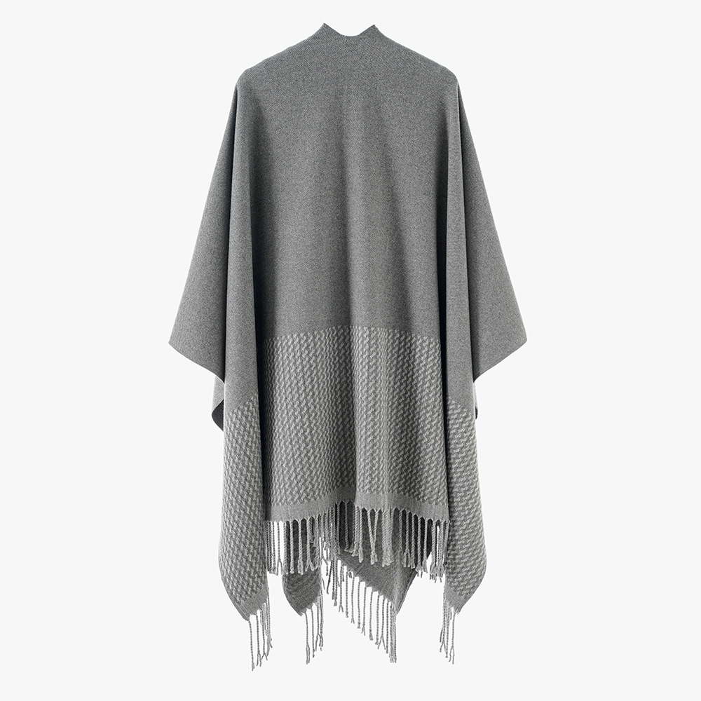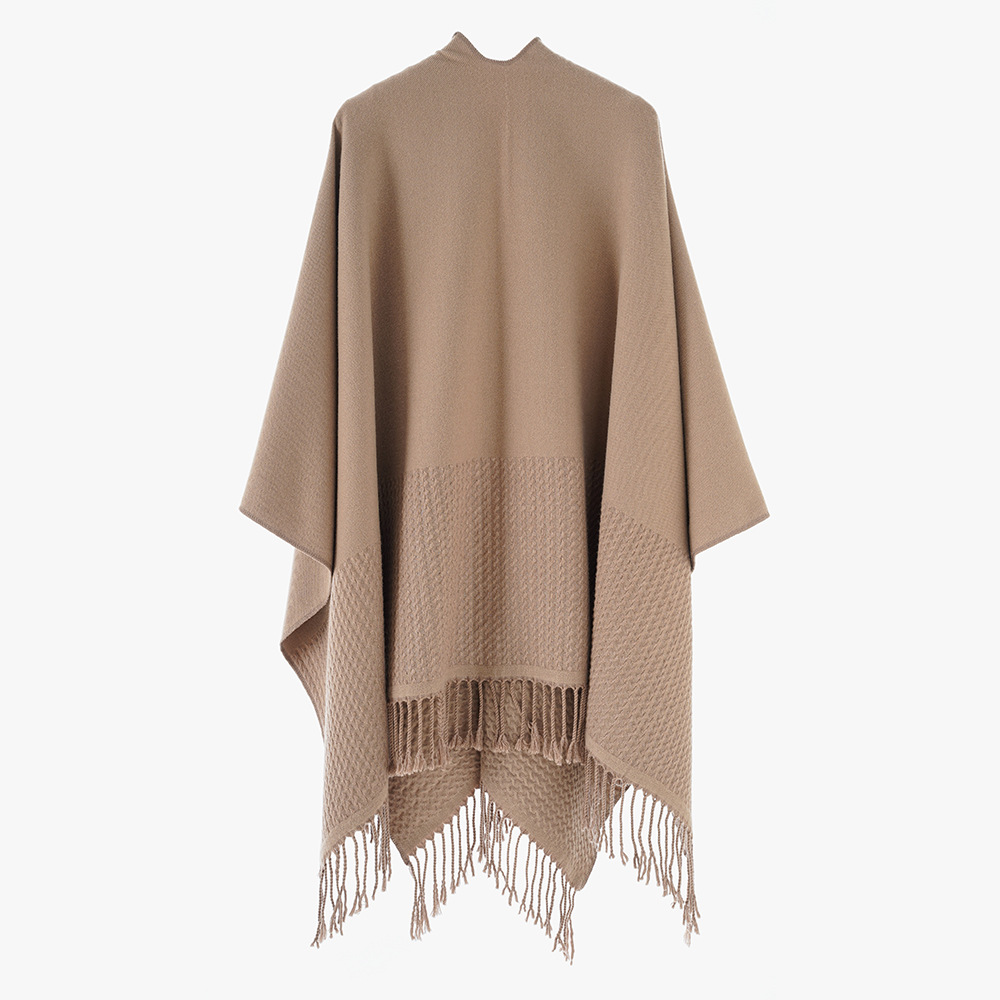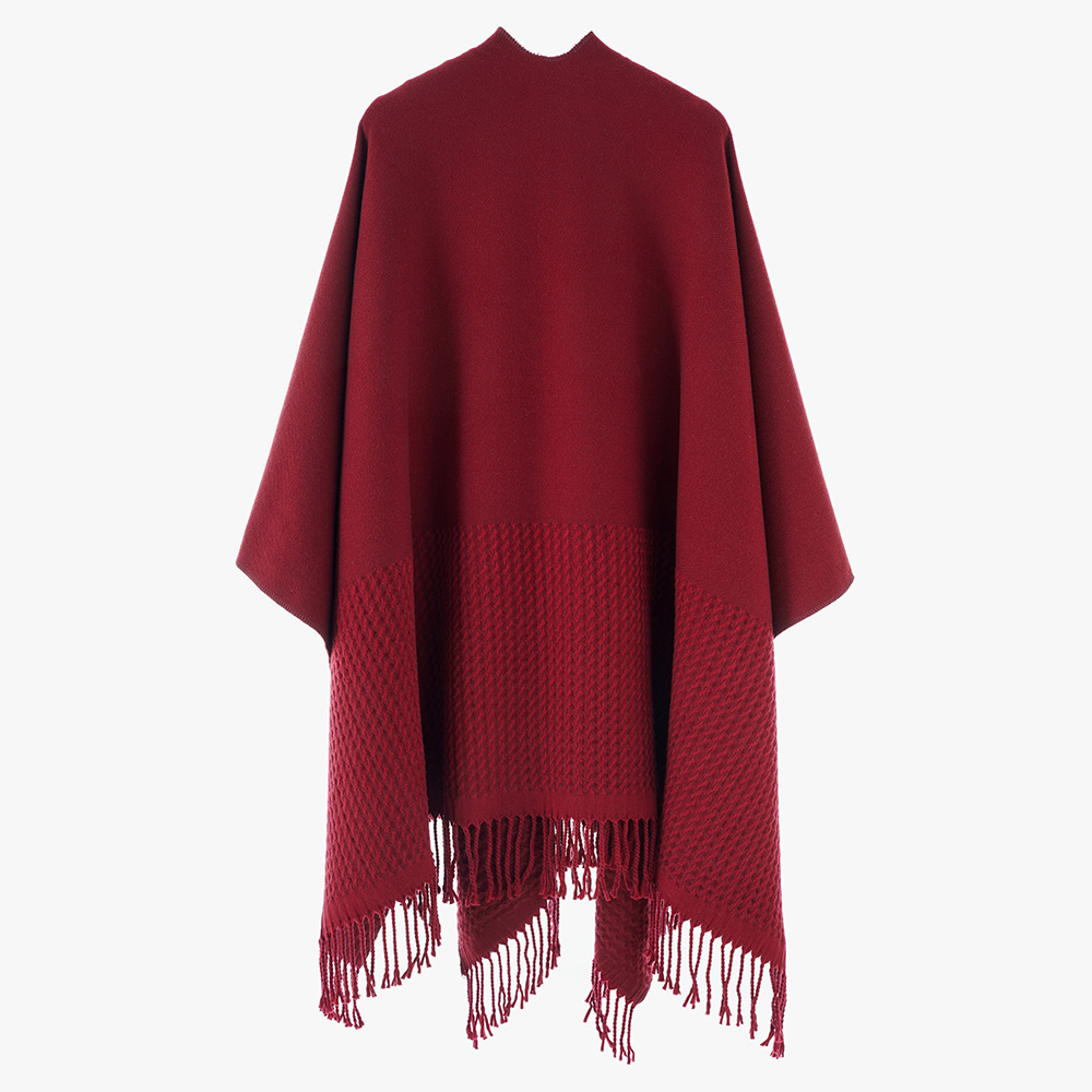 Solid Color Cashmere like Tassel Large Split Shawl Warm Monochrome Cape Plain Shawl